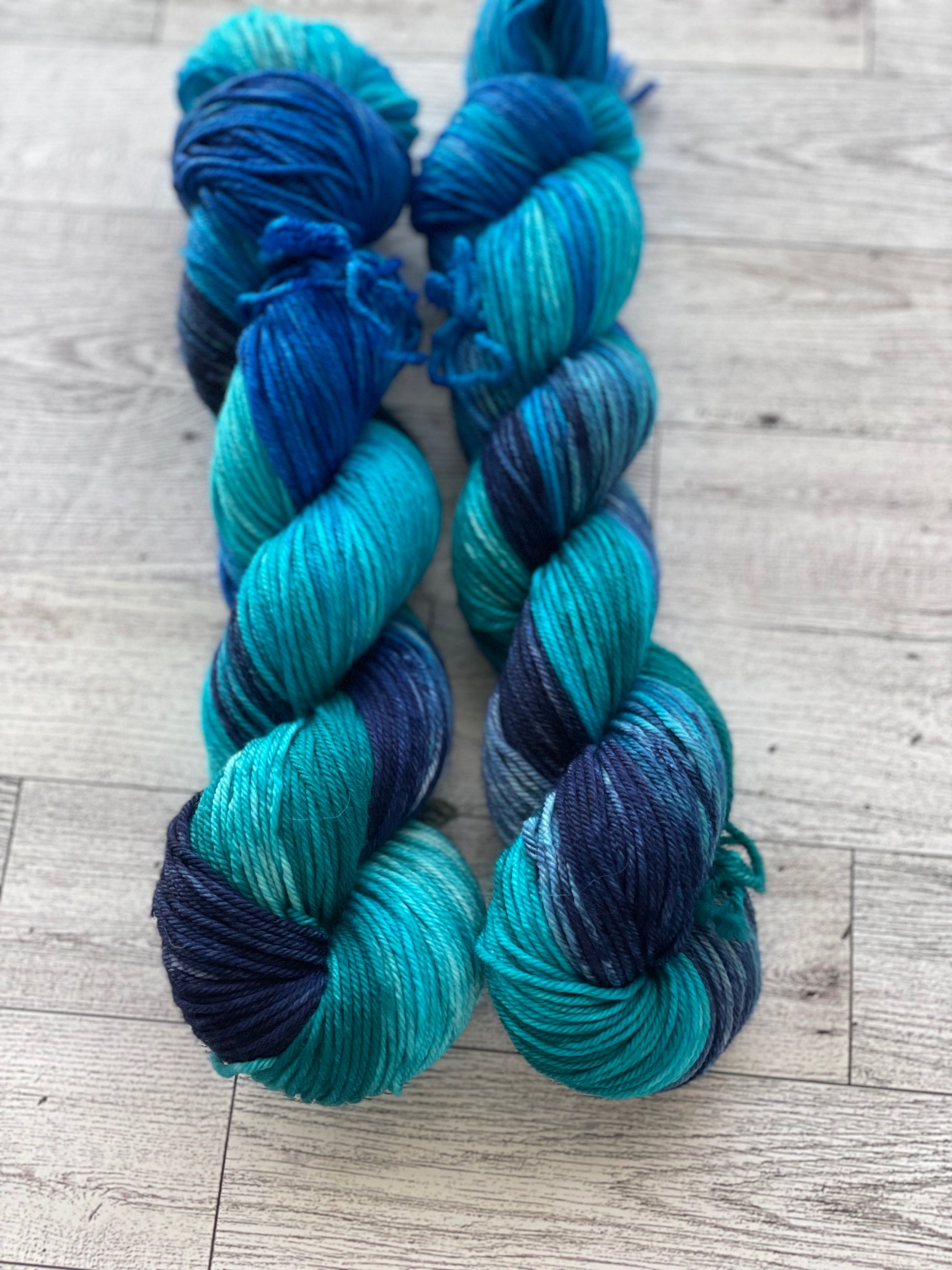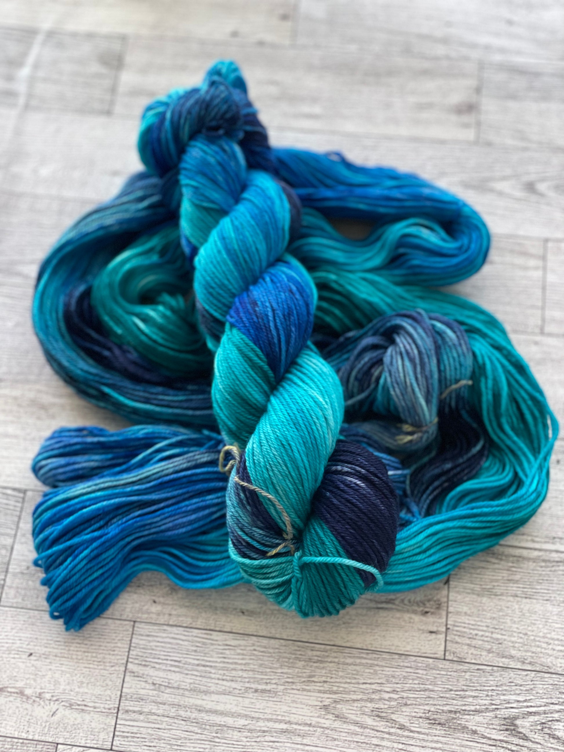 Each skein is hand dyed with professional acid dyes and heat set. I wash the yarns in wool wash and rinse to make sure that the dye has set. Even with this process, you may get minimal bleeding on the first few washes.