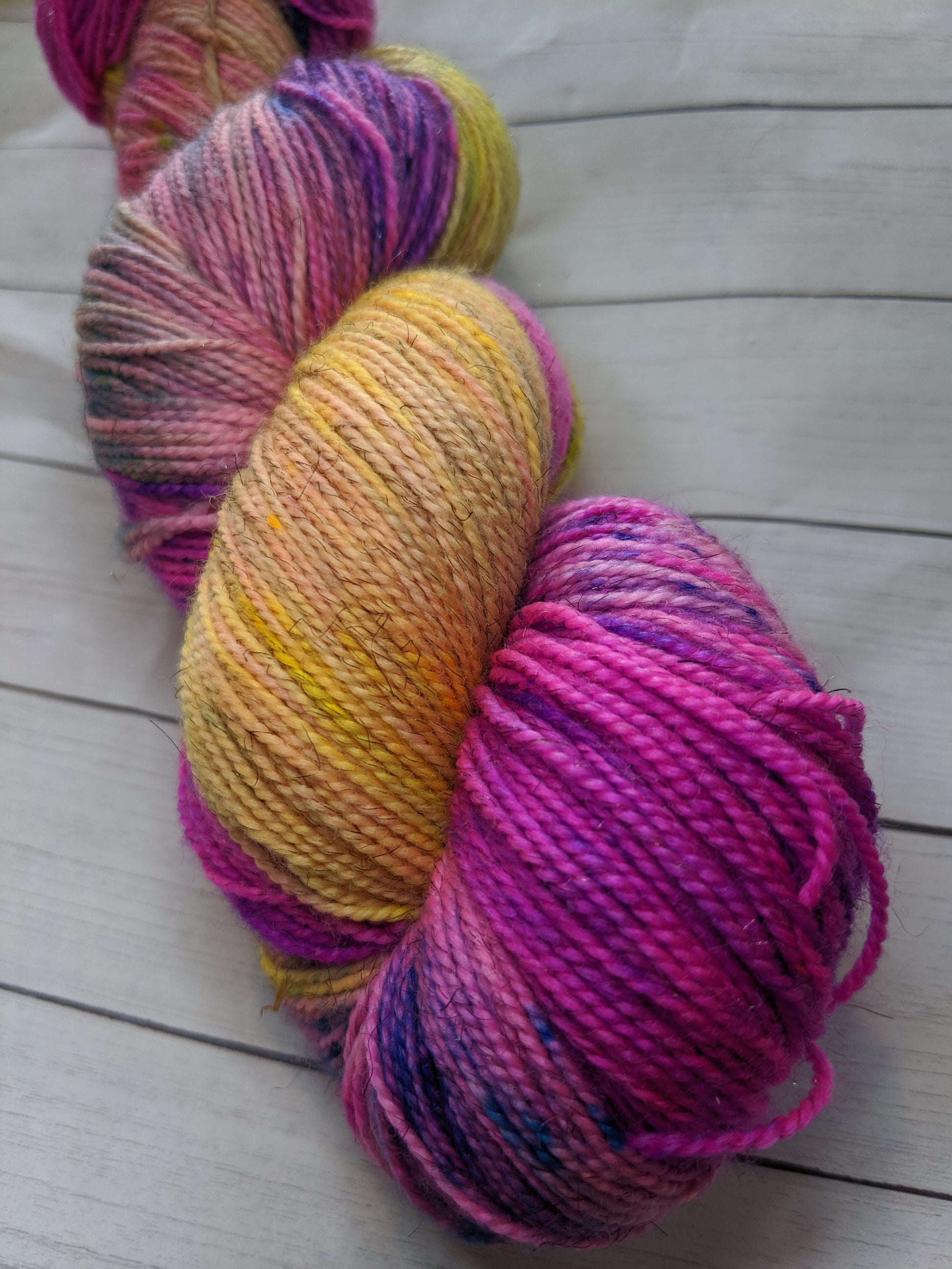 Each skein is hand dyed with professional acid dyes and heat set. I wash the yarns in wool wash and rinse to make sure that the dye has set. Even with this process, you may get minimal bleeding on the first few washes.