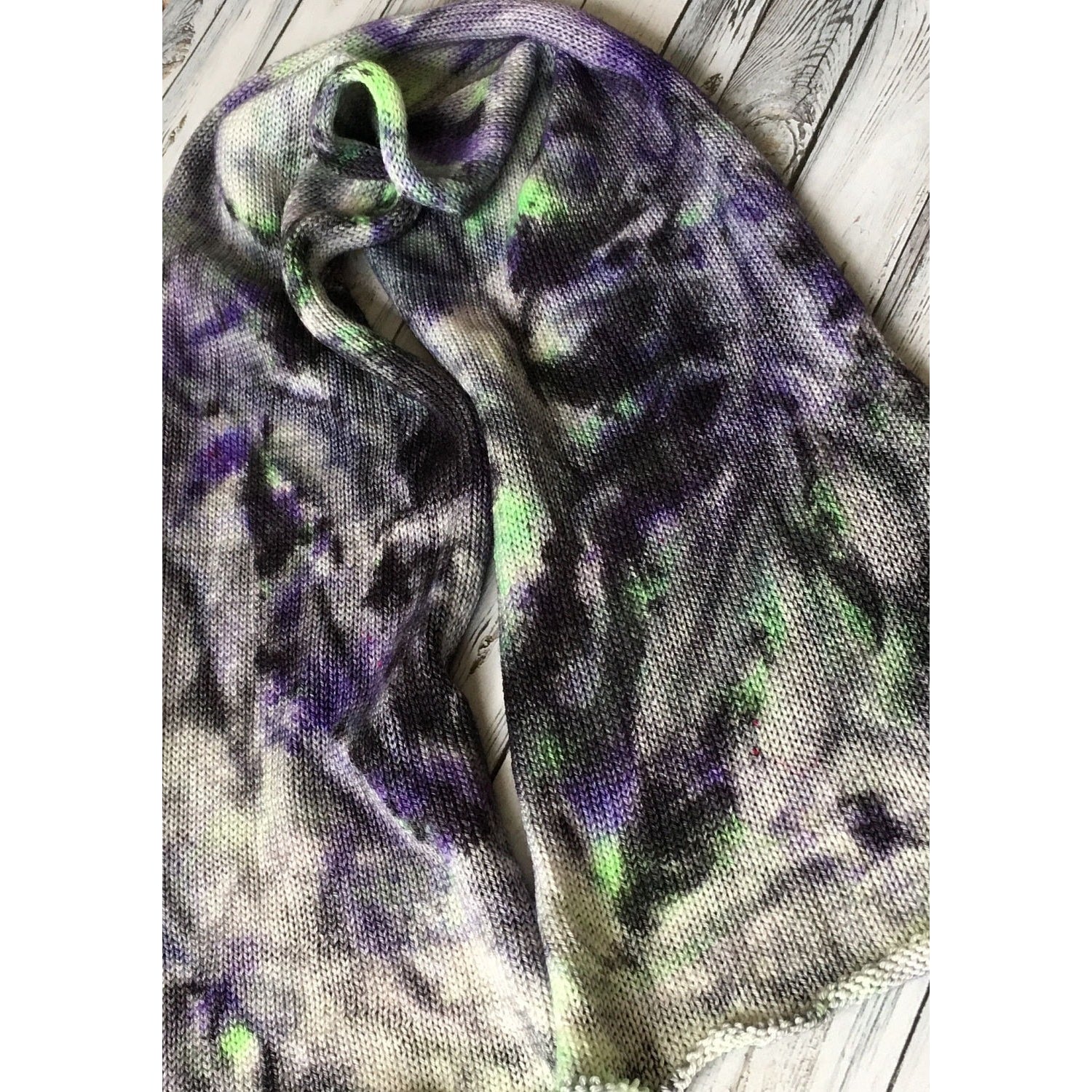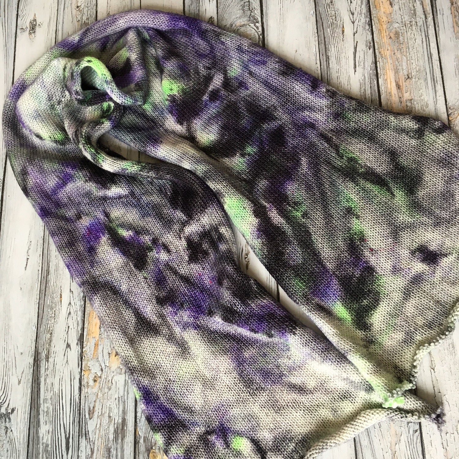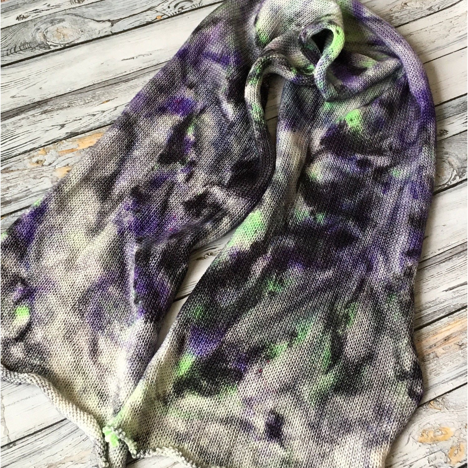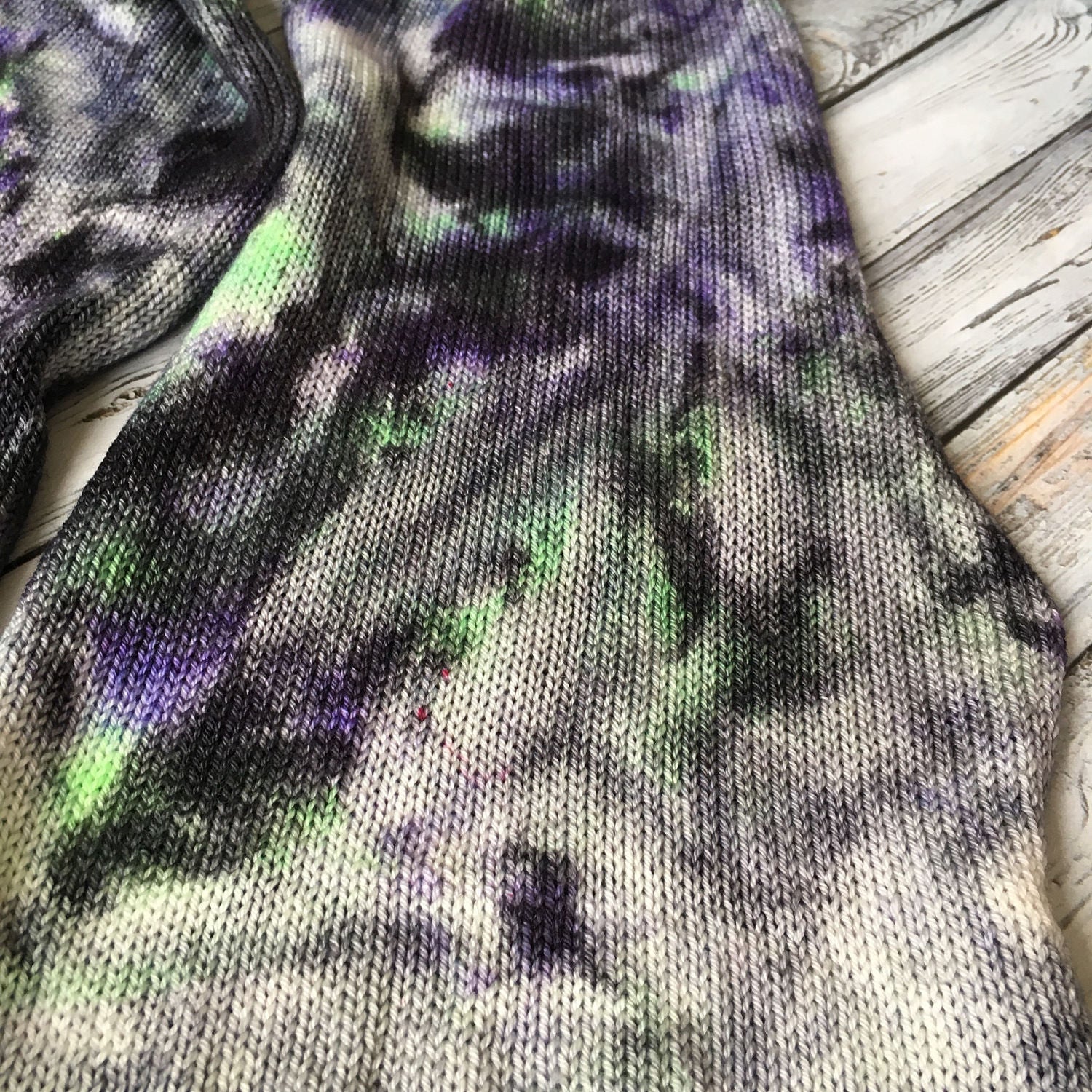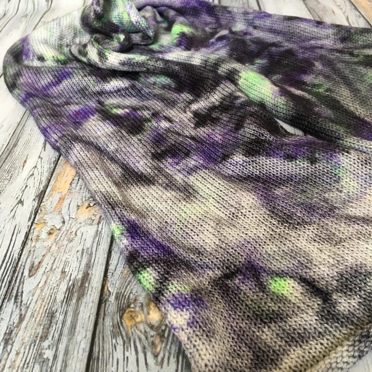 Bellatrix is a hand painted/dyed sock blank. Bellatrix is created using black, purple and neon green. I only use professional quality acid dyes and heat set every single blank. I Hand Dye in small batches and while I try to get them to be close they are not identical.