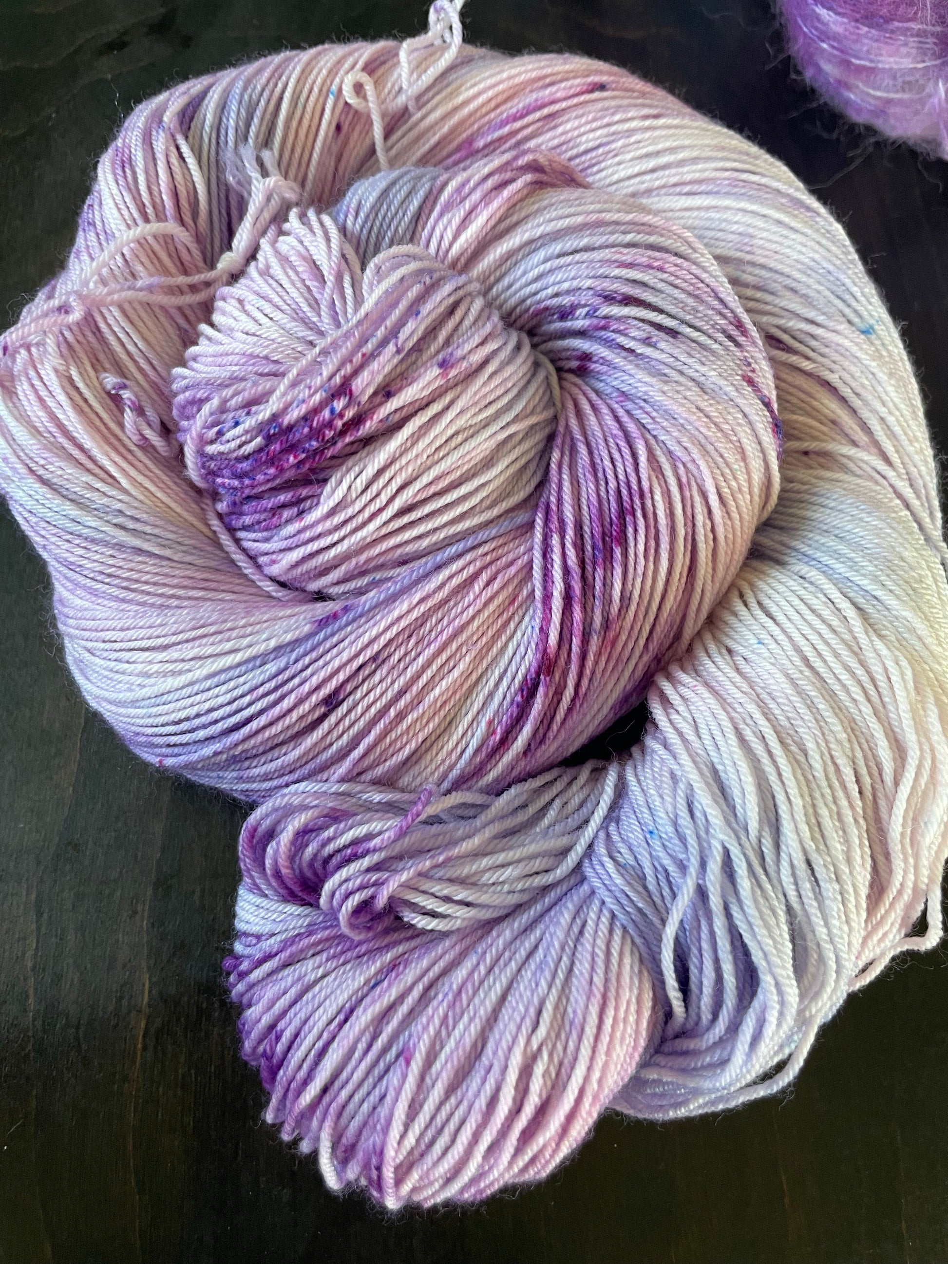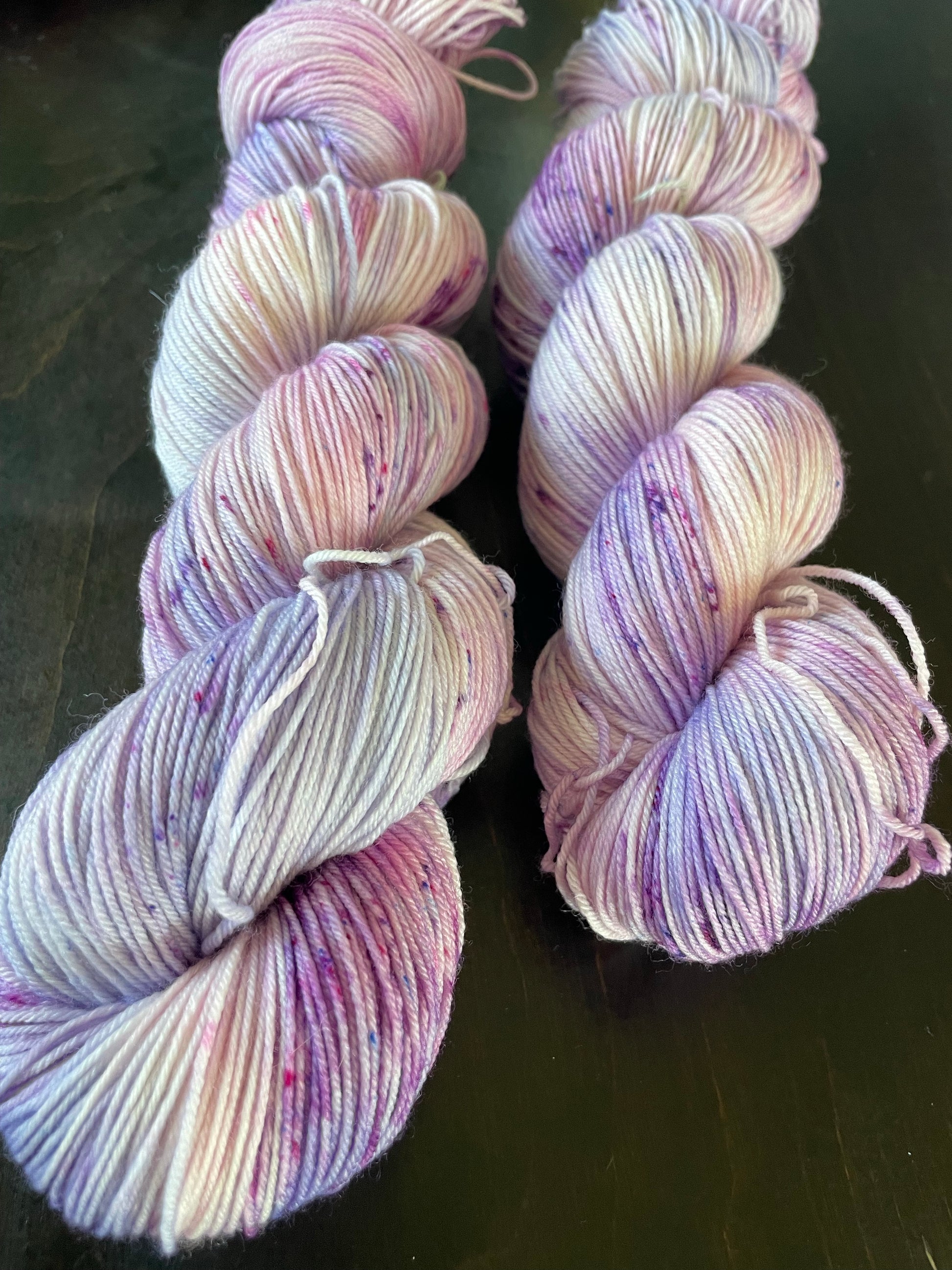Good 4 U is a beautiful purple yarn. Dyed with shades of purple and violet with a speckling of purple.