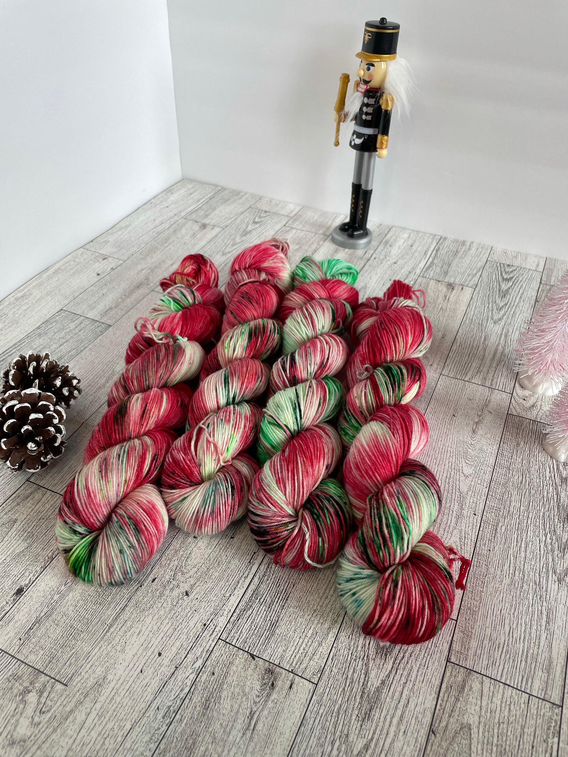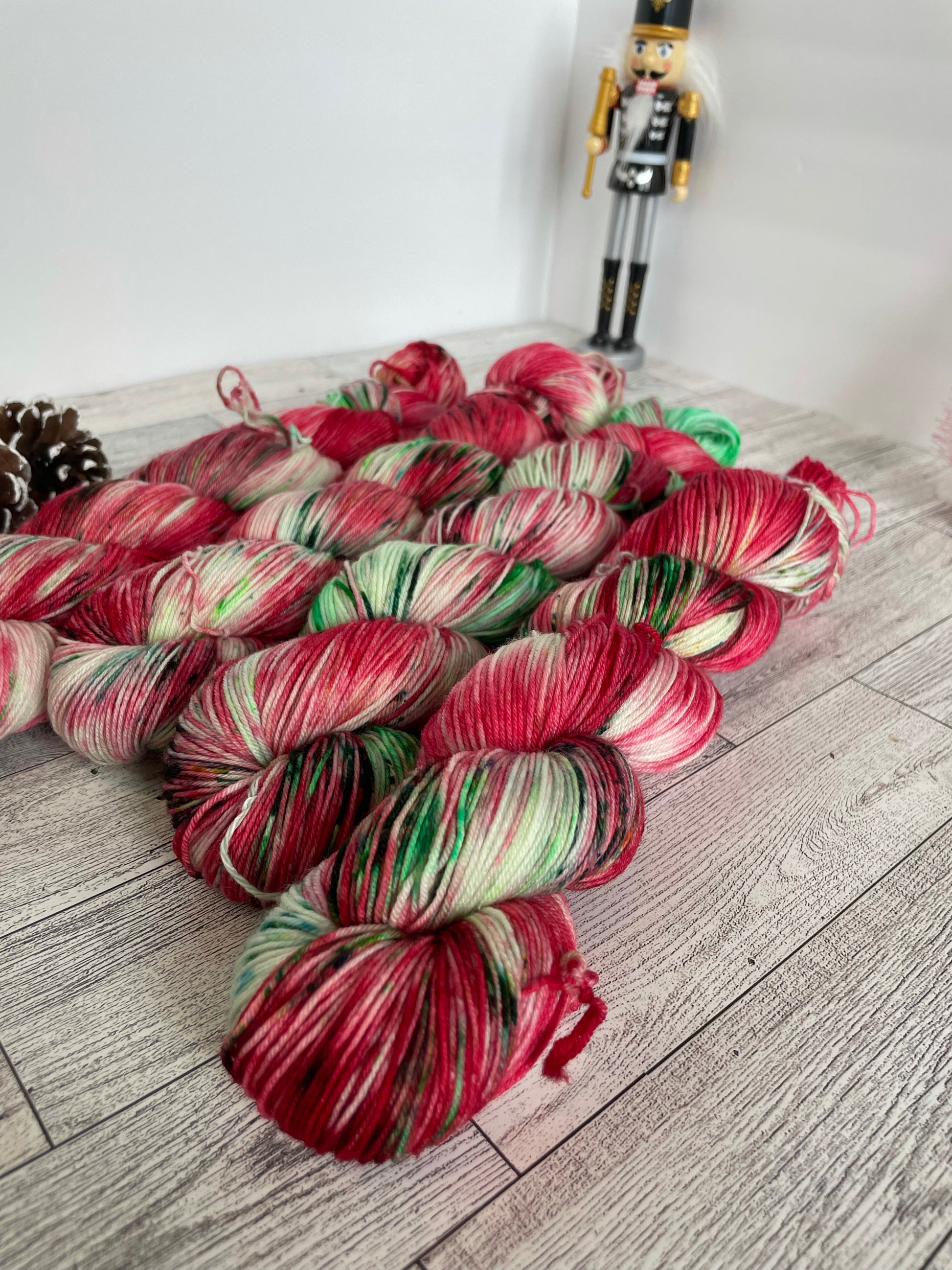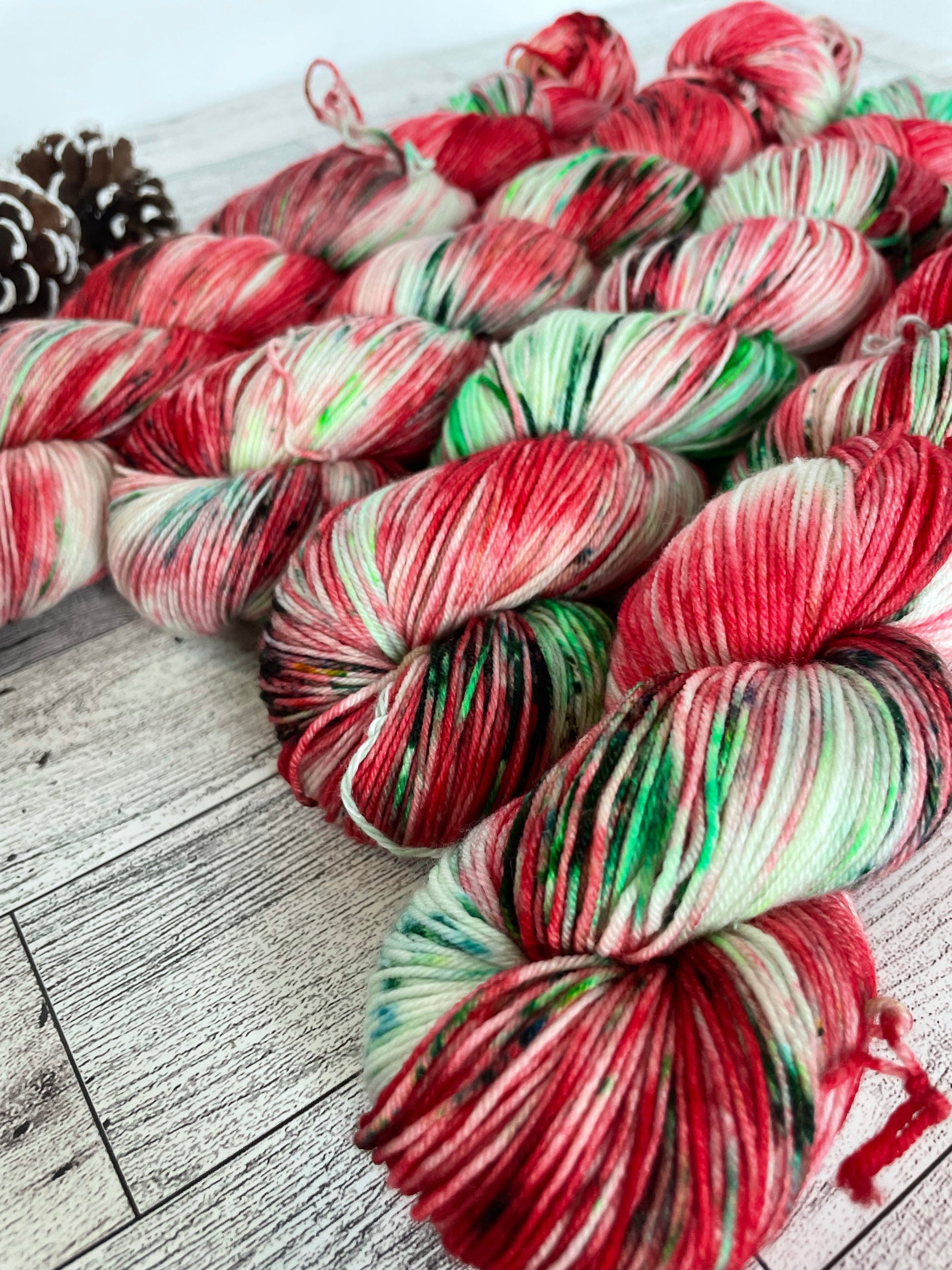 Holidaze is from one of our Christmas colorways. Filled with red and greens it's the perfect Christmas yarn.