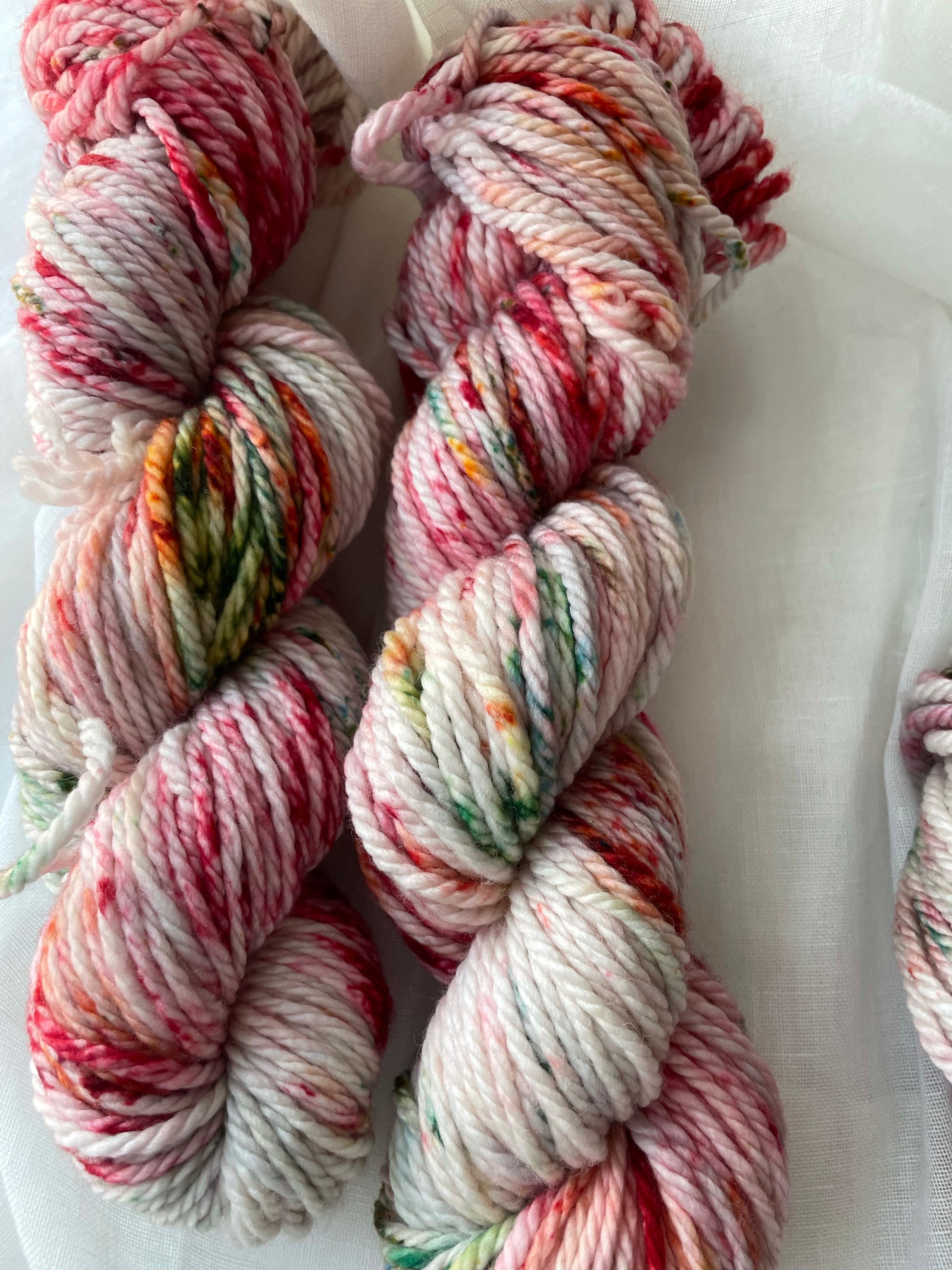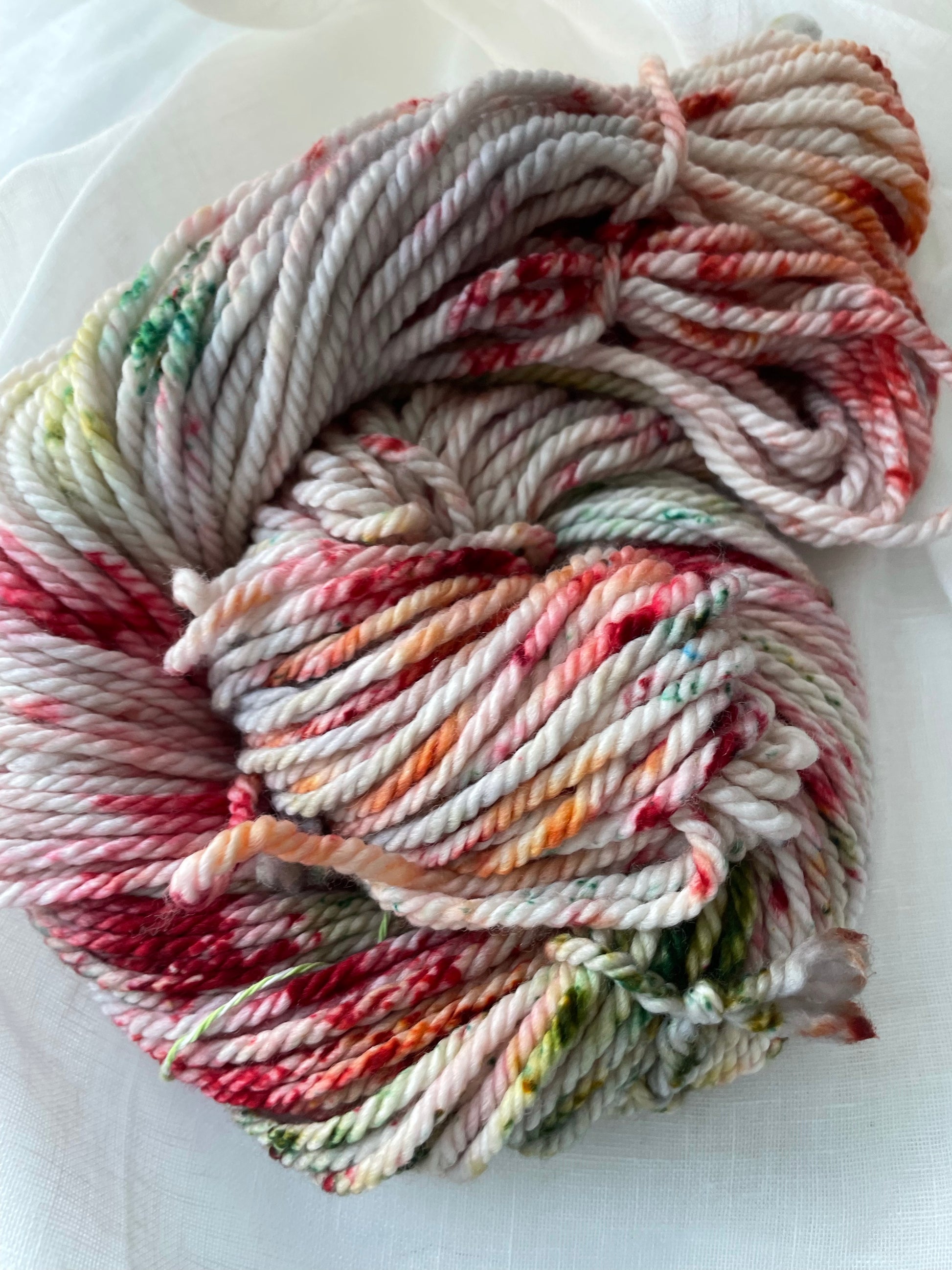 I'll Be Home is a new colorway for the Holidays. Dyed with a silver grey base and red and green speckles. While I try my best to take photos to accurately represent the colors, each computer/mobile device varies in colors. If you have any questions about color/photos please message me.