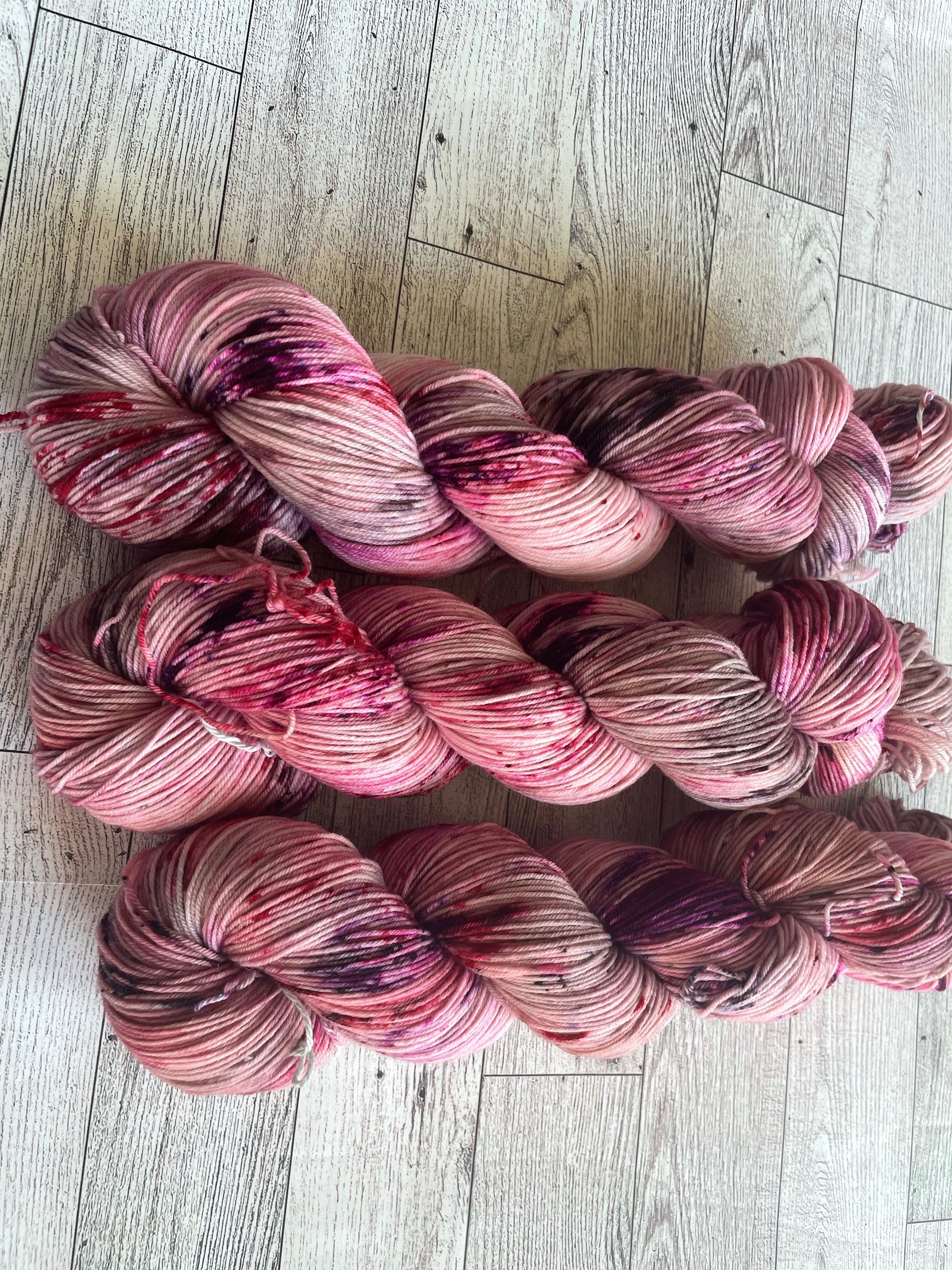 Love Yourself is dyed a beautiful mauve pink base with a speckling of red, pinks, and purple.