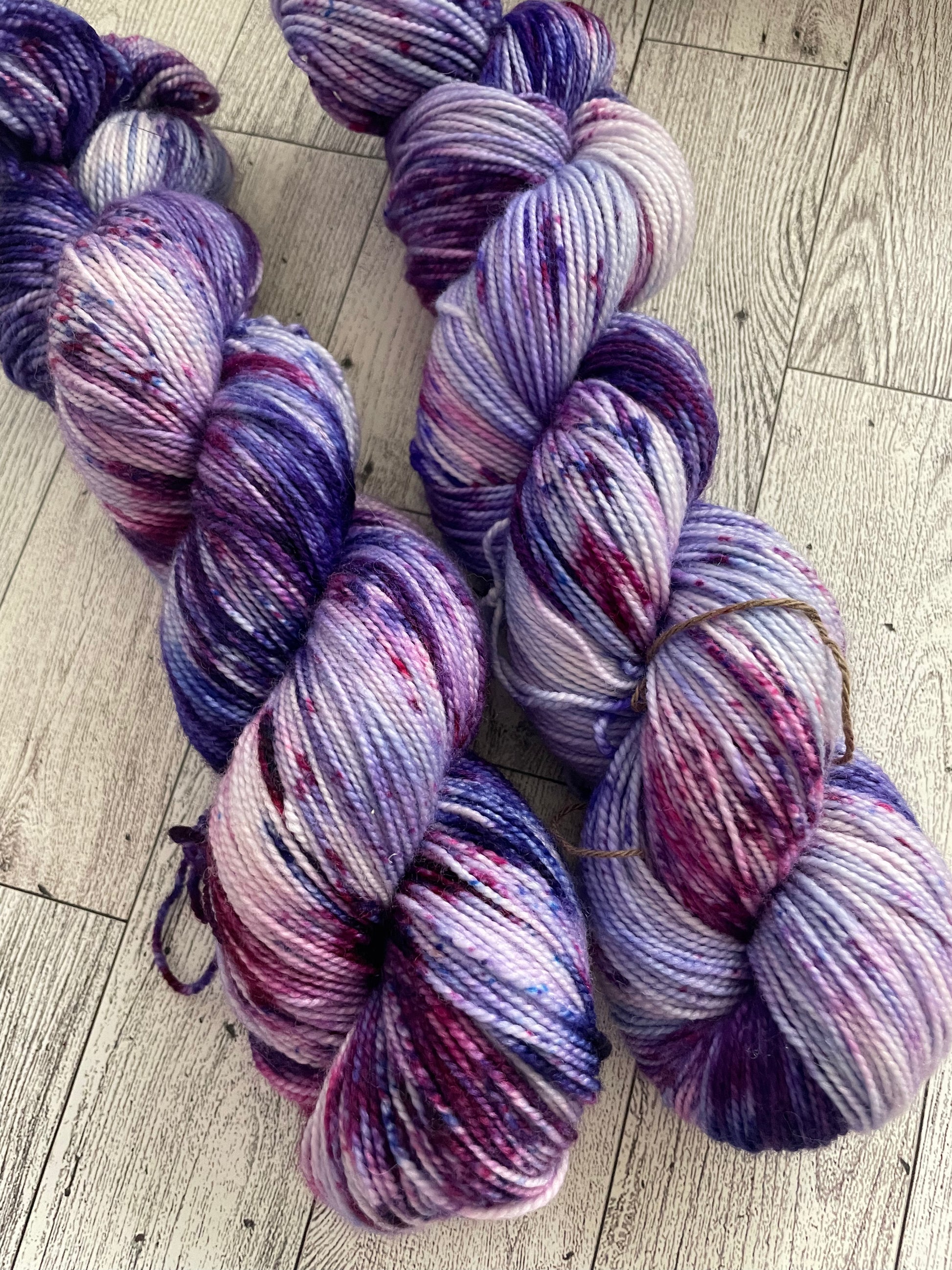Oliver from our Murder Mystery Collection is dyed gorgeous violet with purple and violet speckles.