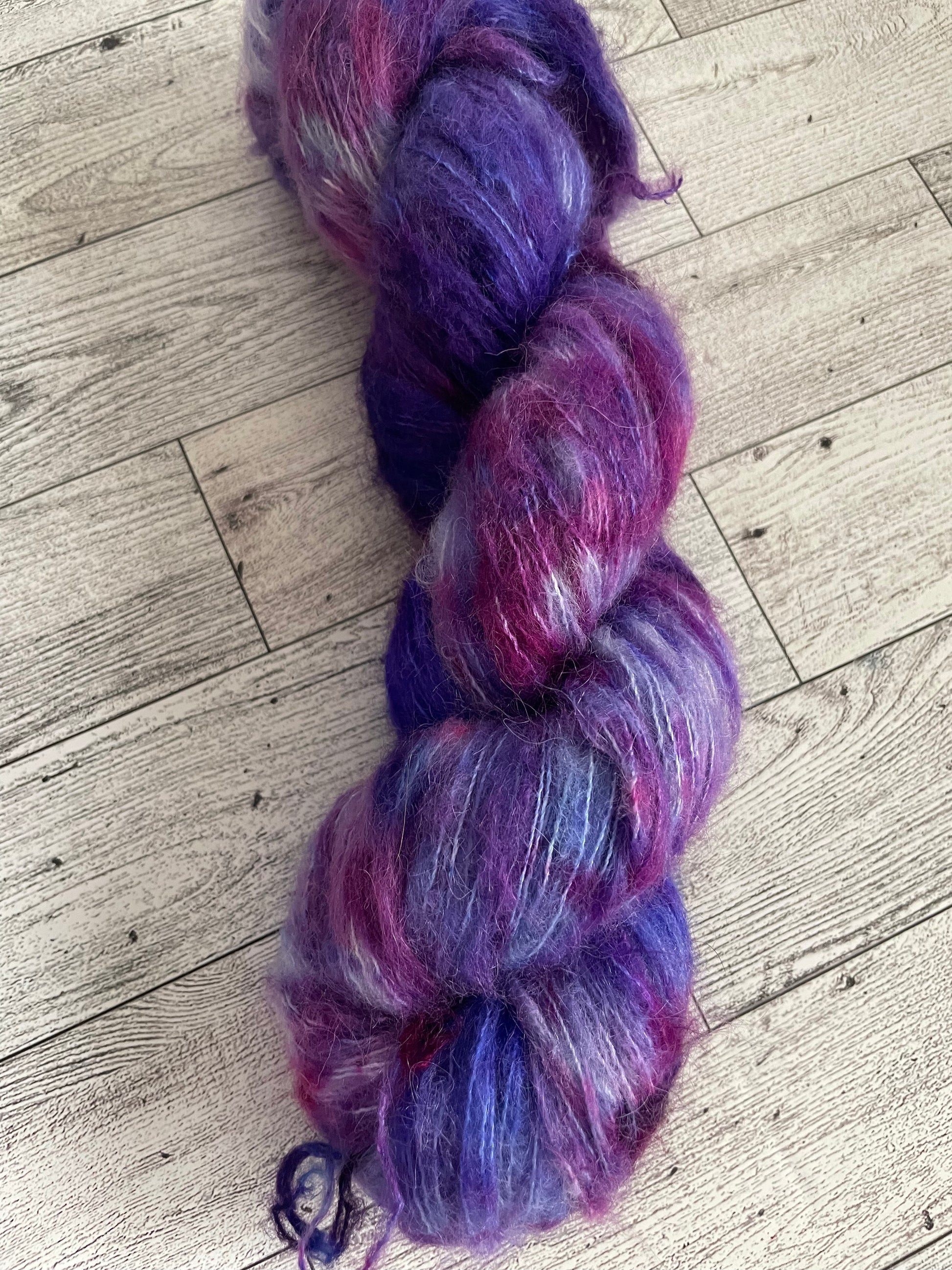 Oliver from our Murder Mystery Collection is dyed gorgeous violet with purple and violet speckles.