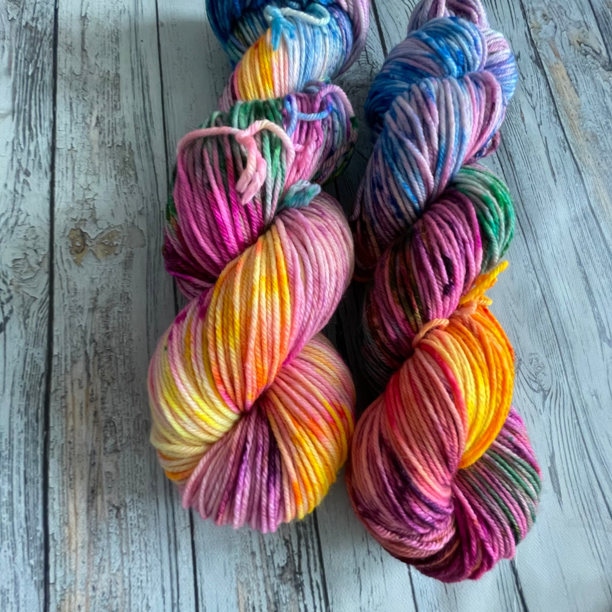 Each skein is hand dyed with professional acid dyes and heat set. I wash the yarns in wool wash and rinse to make sure that the dye has set. Even with this process, you may get minimal bleeding on the first few washes.