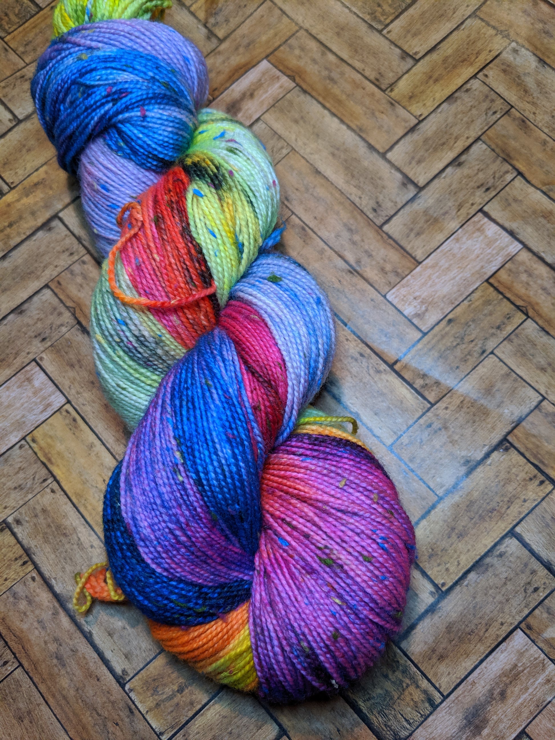 Toxic Rainbow is dyed with bright pink, neon yellow and blue with beautiful mixing among the colors.